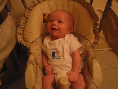 But poor Dylan. Even though he wasn't sick, of course the weekend couldn't be wonderful and smooth. We started him on barley cereal Saturday afternoon. He loved it. His belly, however, did not love it. So the poor little guy had a bellyache and diarhea all Sunday. So what now? We wait til next weekend and try oatmeal. And if that doesn't work, we move to bananas or pears or some other such fruit.